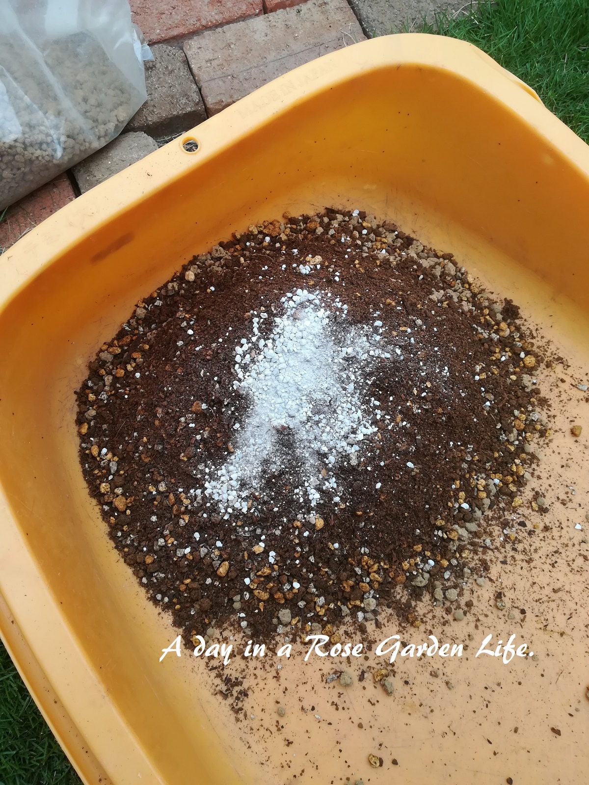 珪酸塩白土。根腐れ防止用に混ぜています。植えるときに根鉢にもまぶします。