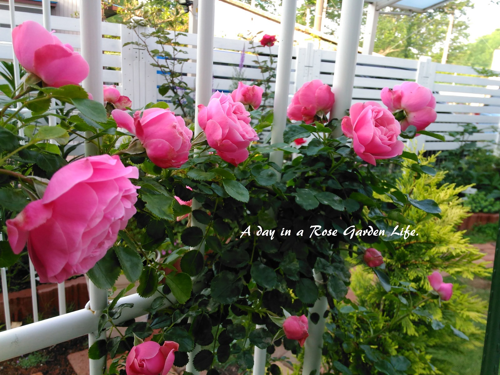 アーチに誘引してあります。ちなみにこのアーチ、国華園で販売されていたものですが、ふるさと納税の返礼品としていただきました。