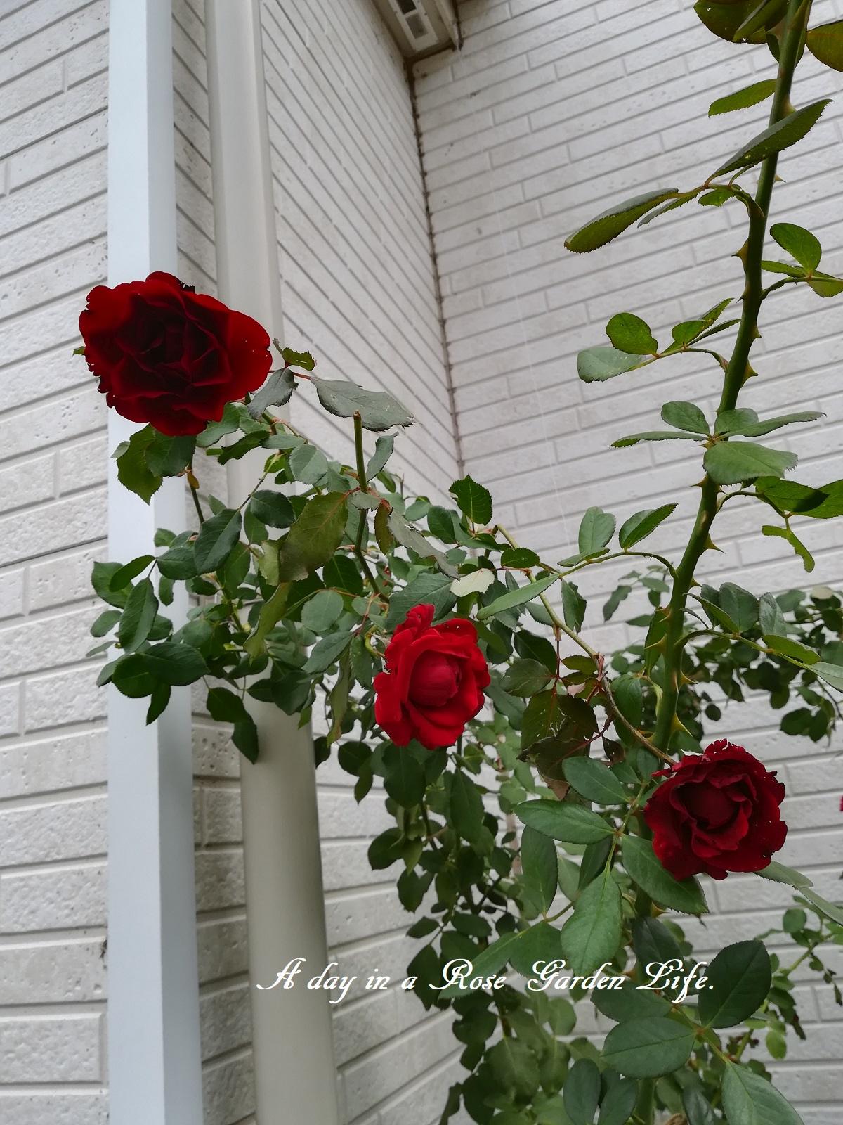 赤バラは曇り空くらいの方が写真には収めやすいです。